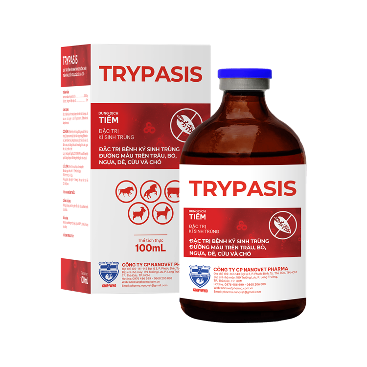 Đặc trị bệnh ký sinh trùng đường máu trên trâu, bò, ngựa, dê, cừu và chó gây ra bởi Trypanosoma, Babesiosis, Anaplasmosis